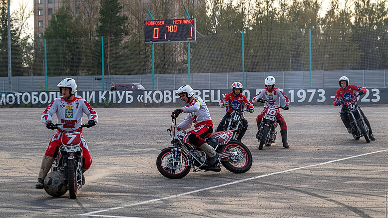 Мотобол — командная игра, где спортсмены управляют мотоциклами и играют большим мячом на поле с воротами. Похоже на футбол, но больше азарта и зрелищности!